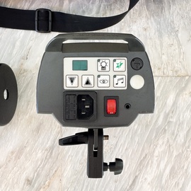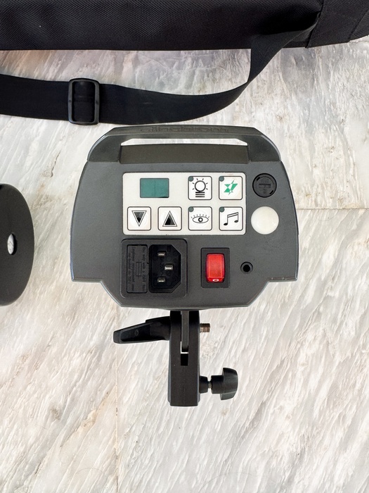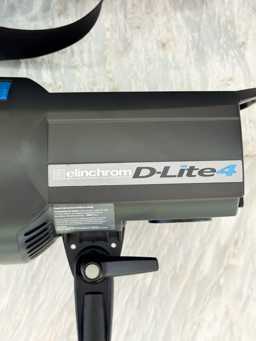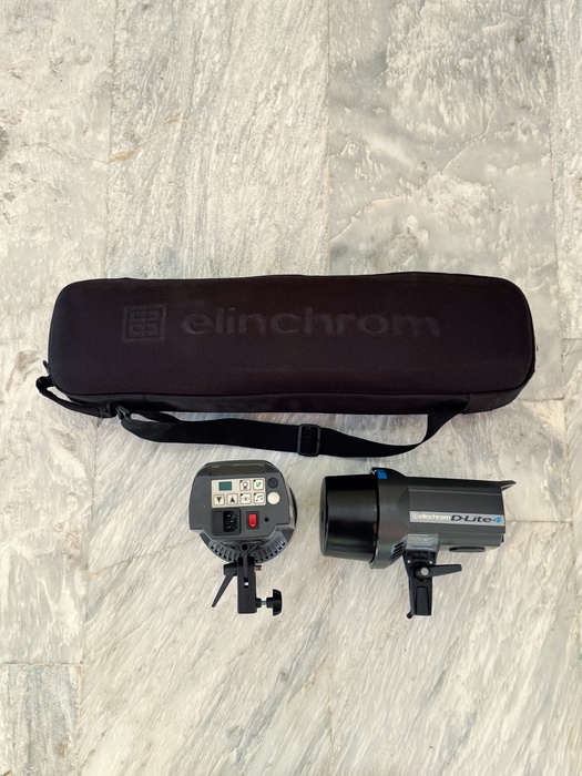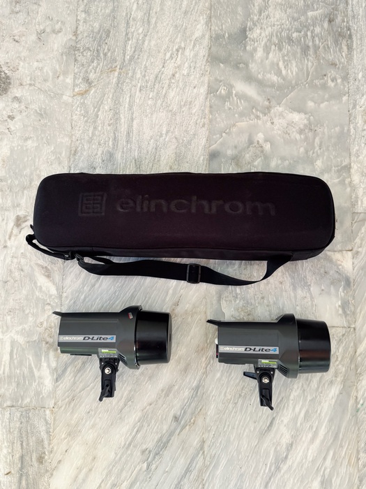 2 x Elinchrom D-Lite 4 Studio Flash heads in great condition along with the original carrying case. The set includes 2 flash heads with their power cables and the carrying case. Each flash head has 400W of power and is equipped with cell function. The units have only used in a studio environment.