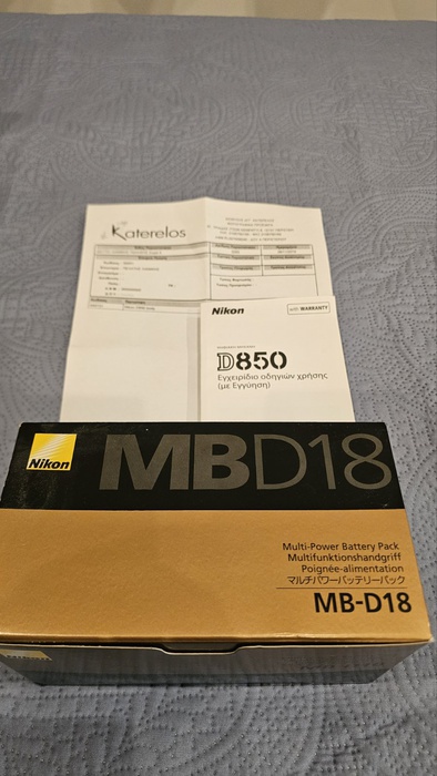 Πωλείται σώμα Nlikon D850, Ελληνικής Αντιπροσωπείας 1ο χέρι με απόδειξη αγοράς απο το κατάστημα Κατερέλος με μόλις 9590 clicks κλείστρου. Η μηχανή είναι αψεγάδιαστη, σαν να βγήκες μόλις από το κουτί της, μαζί με το γνήσιο εργοστασιακό MB - D18 battery grip της Nikon, επίσης με το κουτί του. Η πώληση θα πραγματοποιηθεί ΜΟΝΟ μετά από επιτόπιο έλεγχο του υποψήφιου αγοραστή, ώστε να πιστοποιηθεί η άρτια λειτουργία της εντός Αθηνών, για το λόγο αυτό ΔΕΝ αποστέλλεται ταχυδρομικώς.